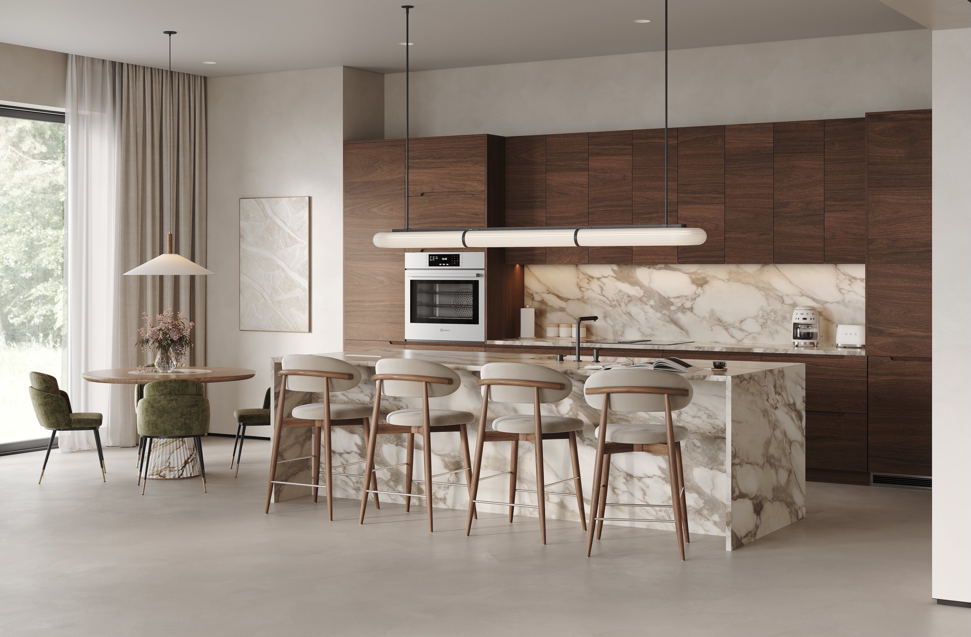 For areas where an even cleaner appearance is desired, the ARC handles can also be combined with blind pulls, maintaining the minimalist aesthetic while ensuring everyday usability remains comfortable and intuitive.