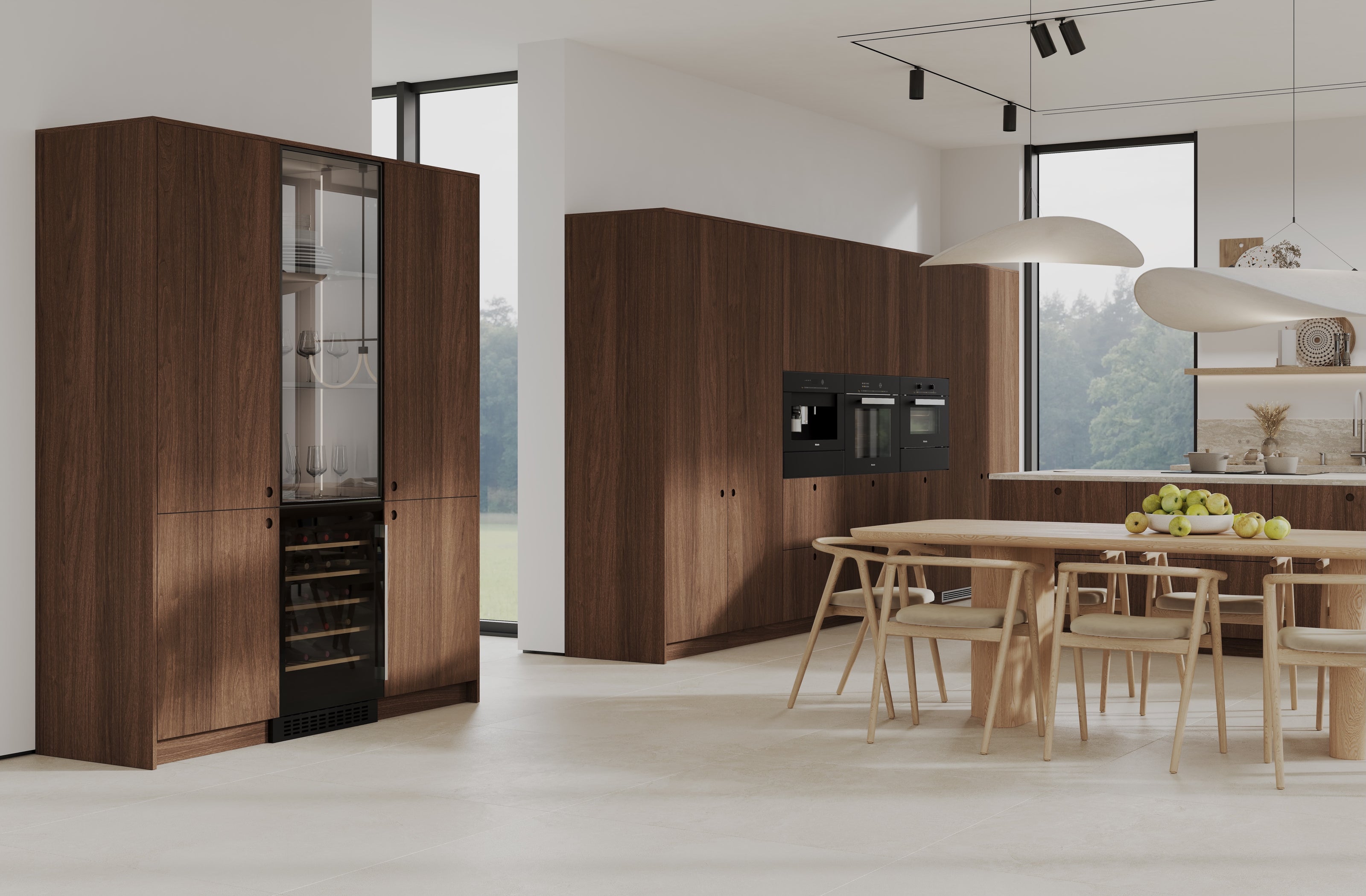 The Black Walnut ARC Collection is designed for modern kitchens that value natural materials, refined craftsmanship, and integrated design. These black walnut kitchen cabinets combine rich wood tones with clean, contemporary lines, making them an ideal choice for a modern walnut kitchen or minimalist European kitchen.