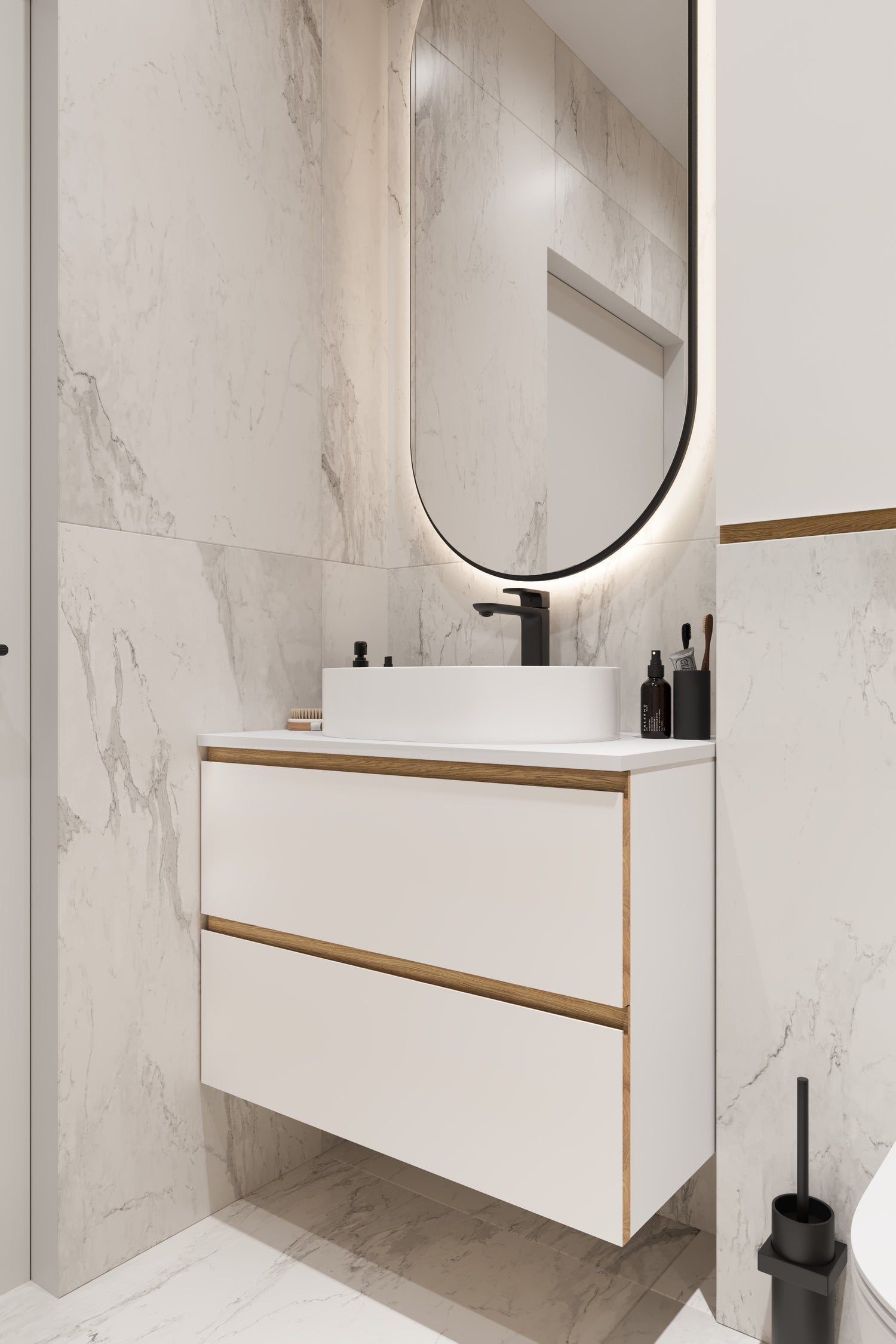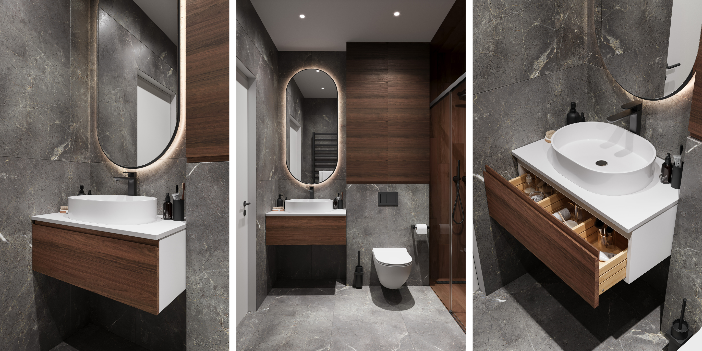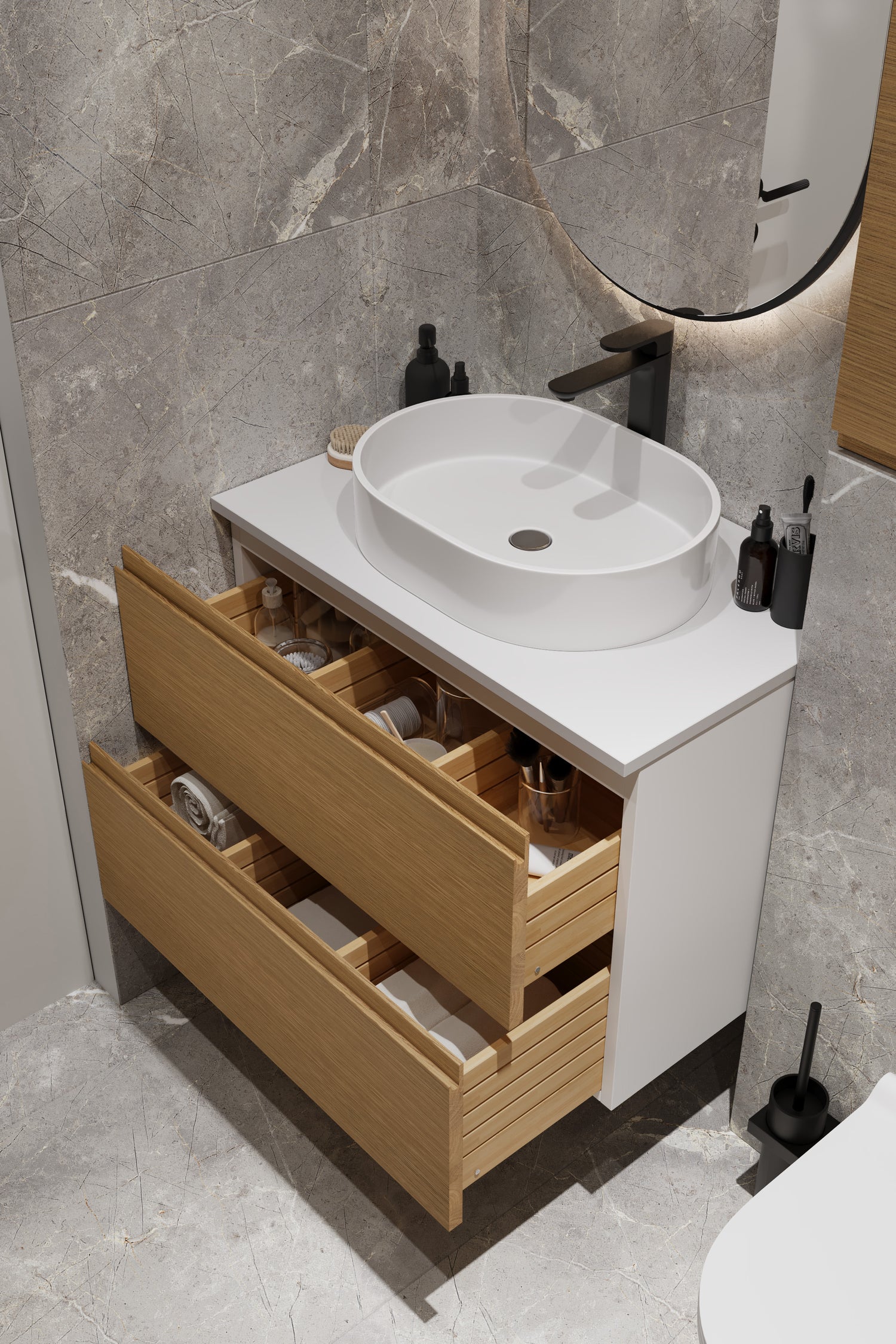Introducing our timeless integrated handle design for your vanity units. Crafted from premium materials such as white oak, black walnut, or Fenix NTM, we also offer painted versions of the doors. They are compatible with both the current Godmorgon version and the previous generation.