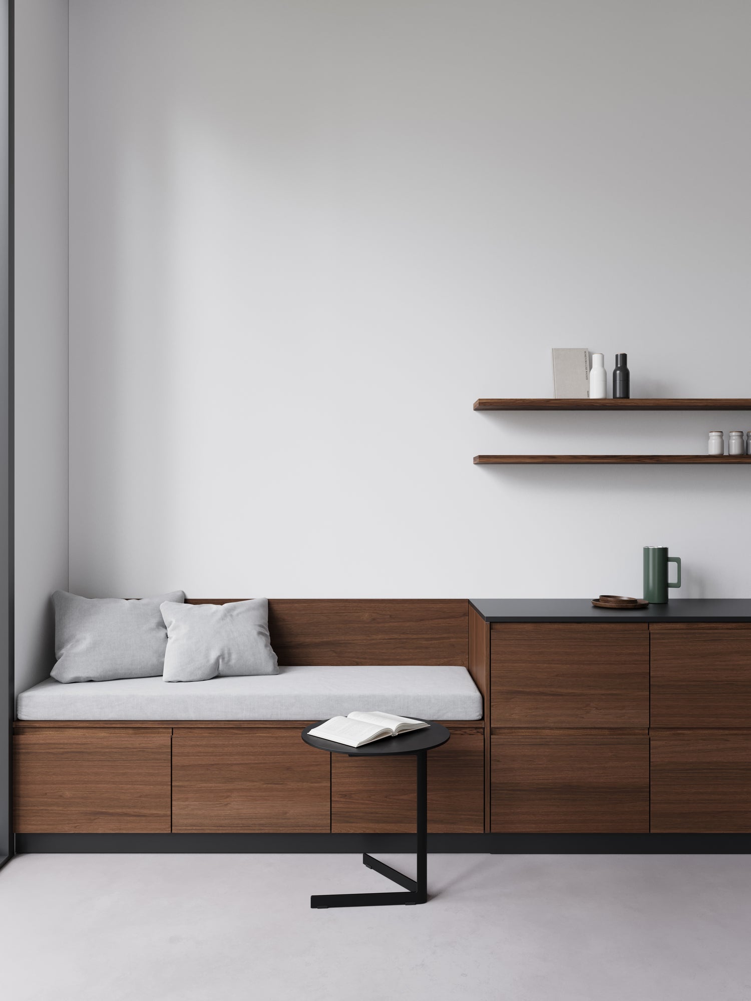 Crafted from premium black walnut hardwood along the edges, these fronts feature Fenix NTM on both the front and back surfaces, known for its ultra-matte finish, soft-touch texture, and resistance to fingerprints.