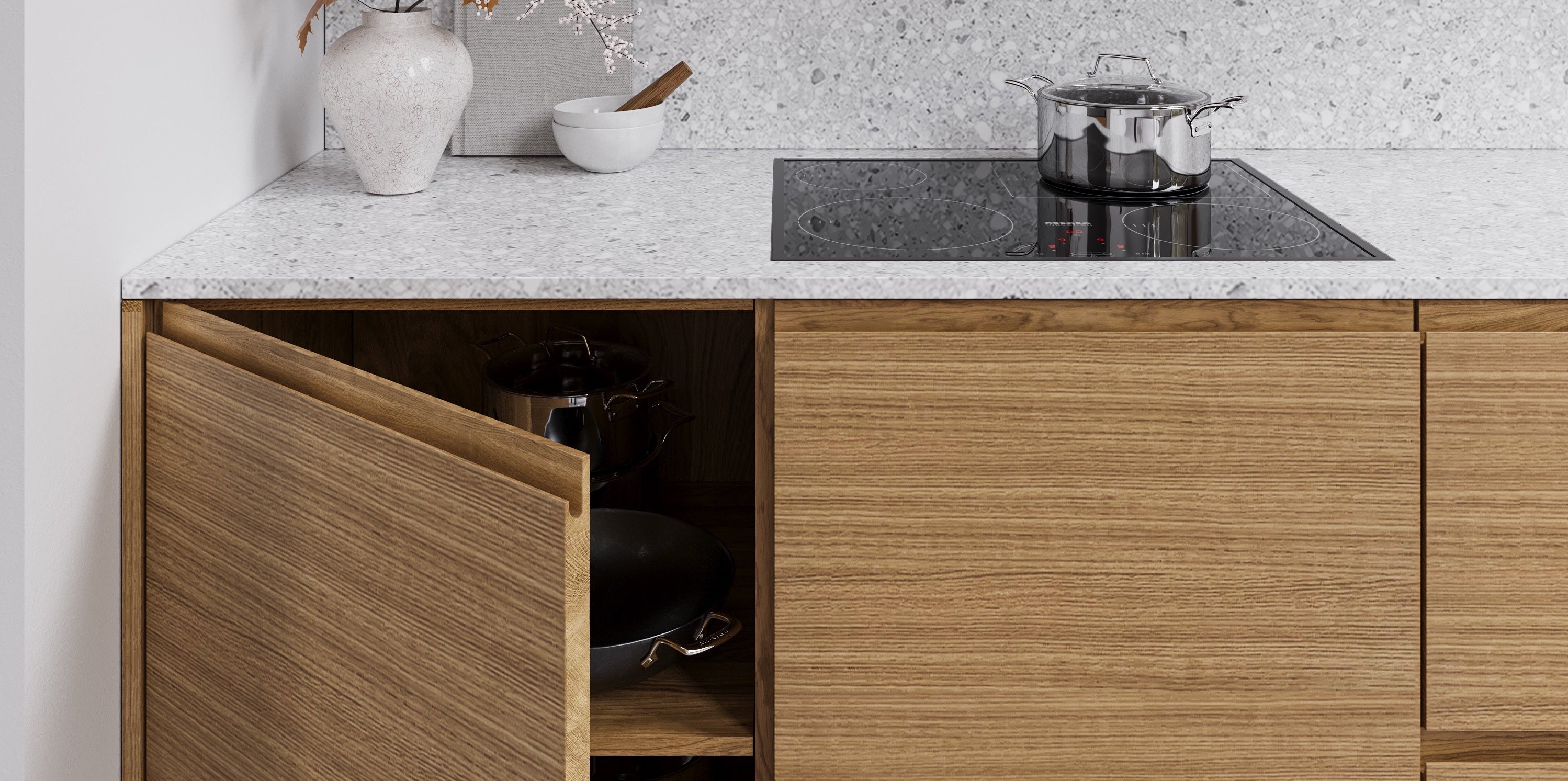 We create kitchen cabinet side panels from premium Fenix NTM laminate, which ensures durability and easy maintenance. Fenix is a high-quality material that resists scratches and fingerprints. It has a sleek, matte finish that looks great and is practical to use. The laminate is perfect for any kitchen, offering both style and function.